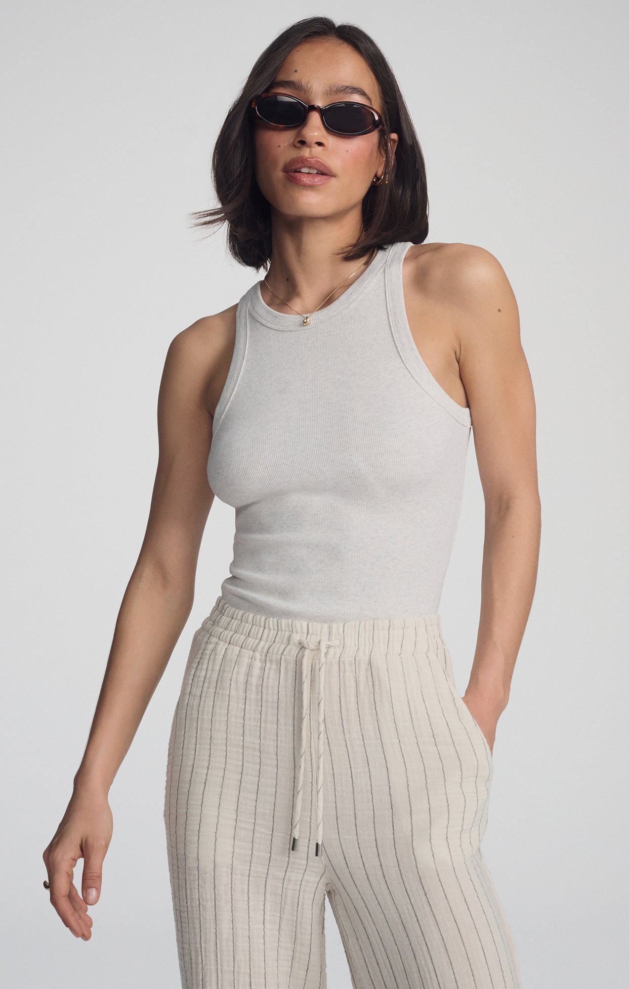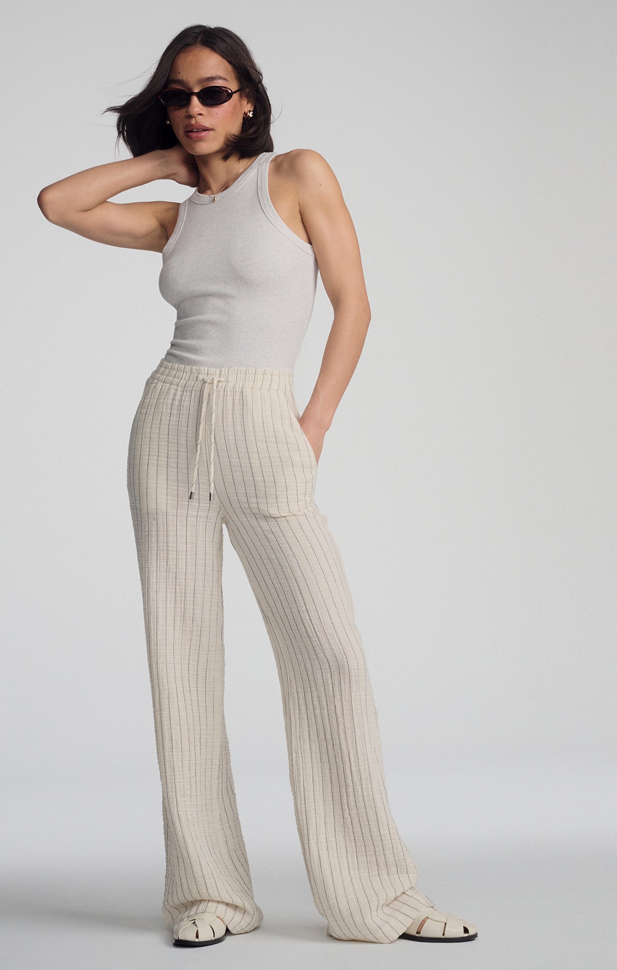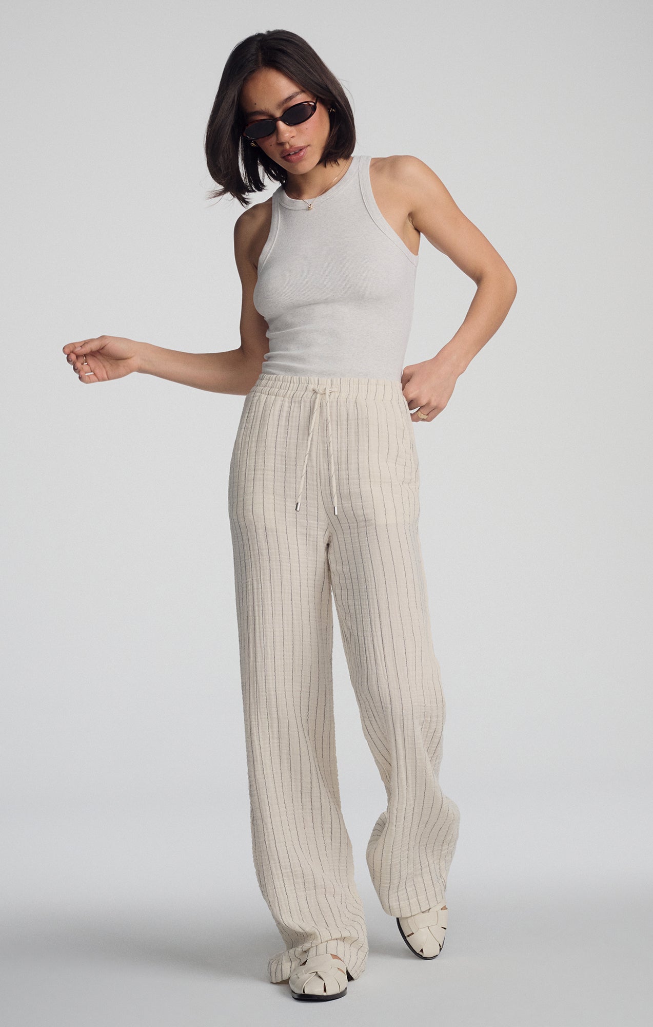 GAUZE PANTS IN GREY STRIPE